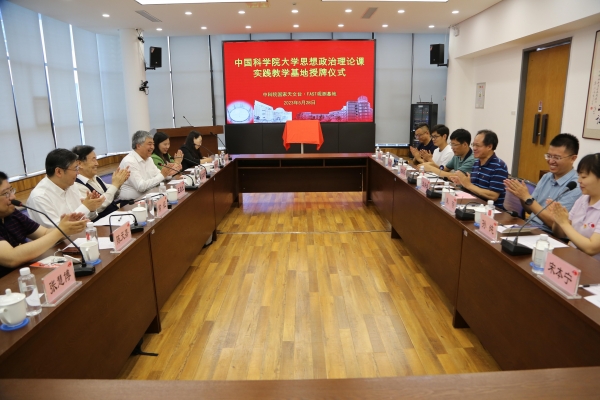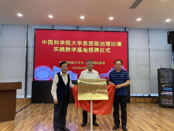 為學習貫徹習近平新時代中國特色社會主義思想,認真落實教育部等十部門印發的《全面推進“大思政課”建設的工作方案》,推動用黨的創新理論鑄魂育人,提升思政課實踐教學質量,國科大和中科院國家天文臺共建的京外思政課實踐教學基地于2023年5月28日在FAST觀測基地隆重揭牌。國科大黨委常委、副校長苗建明,馬克思主義學院院長王庭大,國家天文臺黨委書記、副臺長汪洪巖,黨委委員、FAST運行和發展中心副主任兼總工程師姜鵬以及馬院和國家天文臺FAST觀測基地部分教師和科技骨干參加揭牌儀式,馬院副院長常征主持揭牌儀式。
