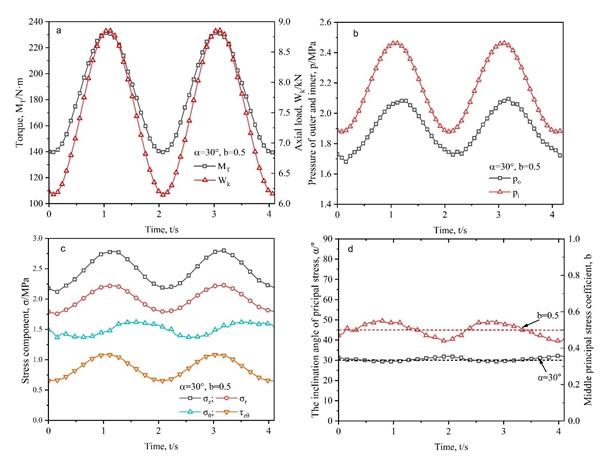 圖1 循環荷載下恒定中主應力系數與主應力偏轉角的應力環境模擬(以α="30°,b="0.5為例)