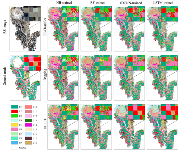 中國科學院西北生態環境資源研究院遙感與地理信息科學研究室科研團隊開展像元內在關系的研究,發現利用像元間的關聯信息建立不同的組合體可以消除集成分類過程中對于多模型的依賴。科研人員提出了一種無需多模型的集成分類方法—“雙子”集成分類框架(Doublet-Based Ensemble Classification Framework,DBECF)。該方法能夠有效提升不同類型遙感影像的分類精度,與現有的基于單像素的集成分類模式相比,在精度和效率方面均有明顯的優勢。另外,DBECF克服了當前集成分類模式耗時的缺點,為深度學習和集成學習的結合提供了一個嶄新視角,對于提取高質量LULC用以支持大范圍長時序的地學研究有著重要的理論參考和實用價值。