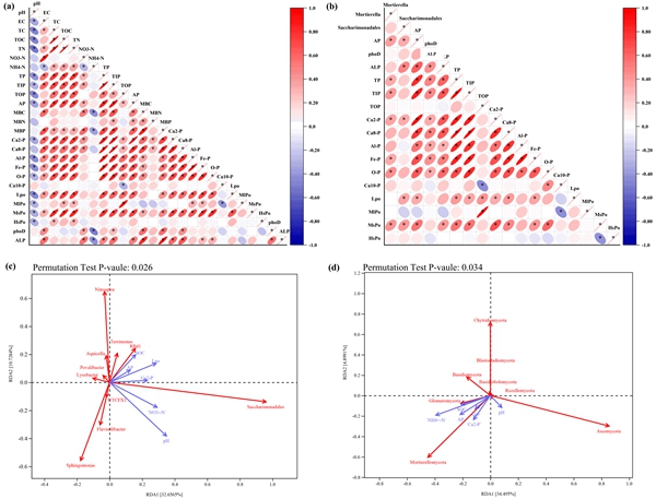 研究發現,在施用GBI后,植物生長和磷吸收顯著改善。GBI的應用顯著提高了大團聚體中的有效磷含量(AP)、phoD 基因豐度和堿性磷酸酶活性。GBI影響了土壤團聚體的組分,導致真菌和細菌群落組成發生了顯著變化。在經GBI處理的植物根際土壤中,富集了參與磷循環的關鍵微生物類群(Saccharimonadales 和Mortierella 等)。該研究強調了GBI的應用在增加AP和影響土壤團聚體的形成方面發揮著至關重要的作用,有可能為堿性石灰性土壤在可持續農業的發展方面取得新成效,提出了GBI增加堿性石灰性土壤中磷有效性機制的新見解。