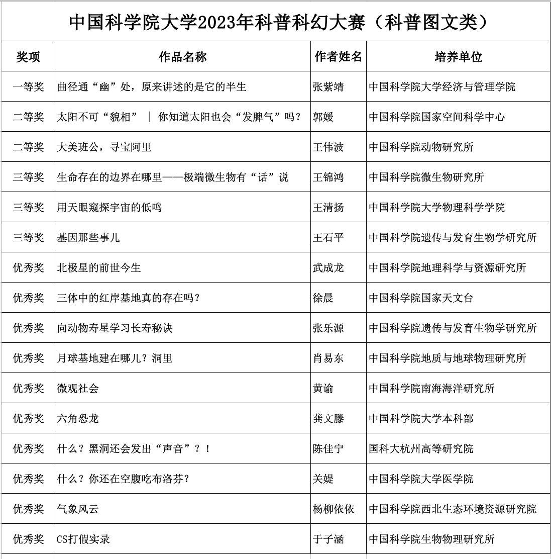 為深入學(xué)習(xí)貫徹習(xí)近平總書記關(guān)于科學(xué)普及和科學(xué)素質(zhì)建設(shè)的重要指示批示精神,激發(fā)中國科學(xué)院大學(xué)(以下簡稱“國科大”)學(xué)子發(fā)揮專業(yè)優(yōu)勢進(jìn)行科普科幻創(chuàng)作的熱情,提升公眾科學(xué)素質(zhì),2023年9月至11月,國科大面向全體在校學(xué)生舉辦2023年科普科幻大賽。